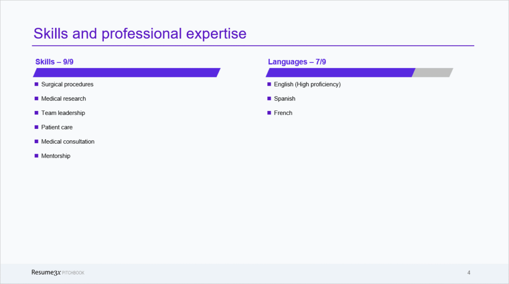 This page showcases sample skills and expertise for some professions, from the Resume3x standard pitchbook. Overall, you will see the creativity in these samples. Some of them really separates you from the rest.